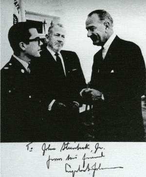 In 1965, John was drafted into the Vietnam war where he served as a communications specialist for Armed Forces Radio and TV. Upon his return to the United States, prior to his discharge, he was asked by the Washingtonian to write an article which he titled The Importance of Being Stoned in Vietnam. He was called to testify in front of a Senate Subcommittee on drug abuse by American troops. Despite General William Westmoreland’s statement that “Private John Steinbeck’s comments on the use of marijuana in Vietnam were baseless”, John received an honorary discharge.