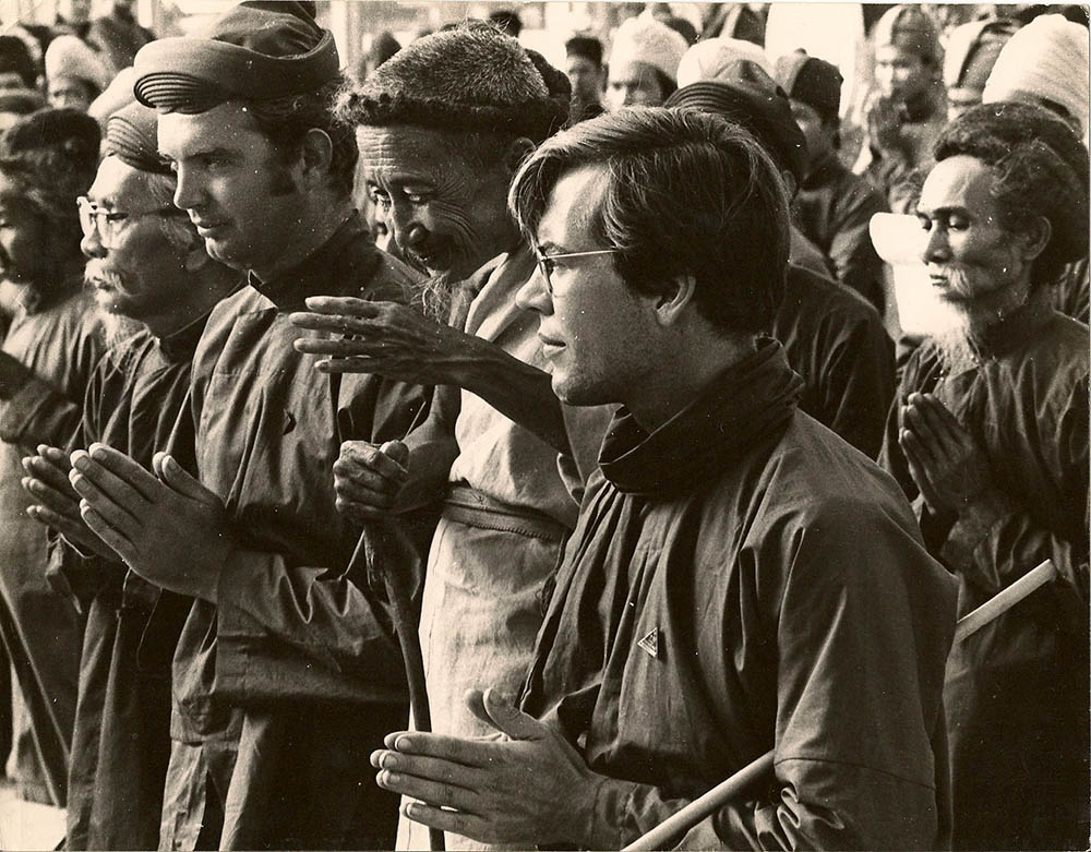 In 1968, John returned to Vietnam as a journalist. Along with Sean Flynn, son of actor Errol Flynn, he started Dispatch News Service. Fluent in street Vietnamese, they quickly became independent of the flow of information dispensed by the United States Press Office. Hence, they were the first to disclose the truth about the My Lai massacre and the Con Son Tiger cages. While Sean was in Cambodia on a photo shoot, he was taken as a POW and never seen again. John’s Vietnam memoir In Touch was published by Knopf in 1969. He wrote about his experiences with the Vietnamese, the GI’s and his romantic interlude with that exotic culture. John took the vows of a Buddhist monk while living on Phoenix Island in the middle of the Mekong delta, under the tutelage of the politically powerful Coconut Monk, a silent tree-dwelling Buddhist yogi.